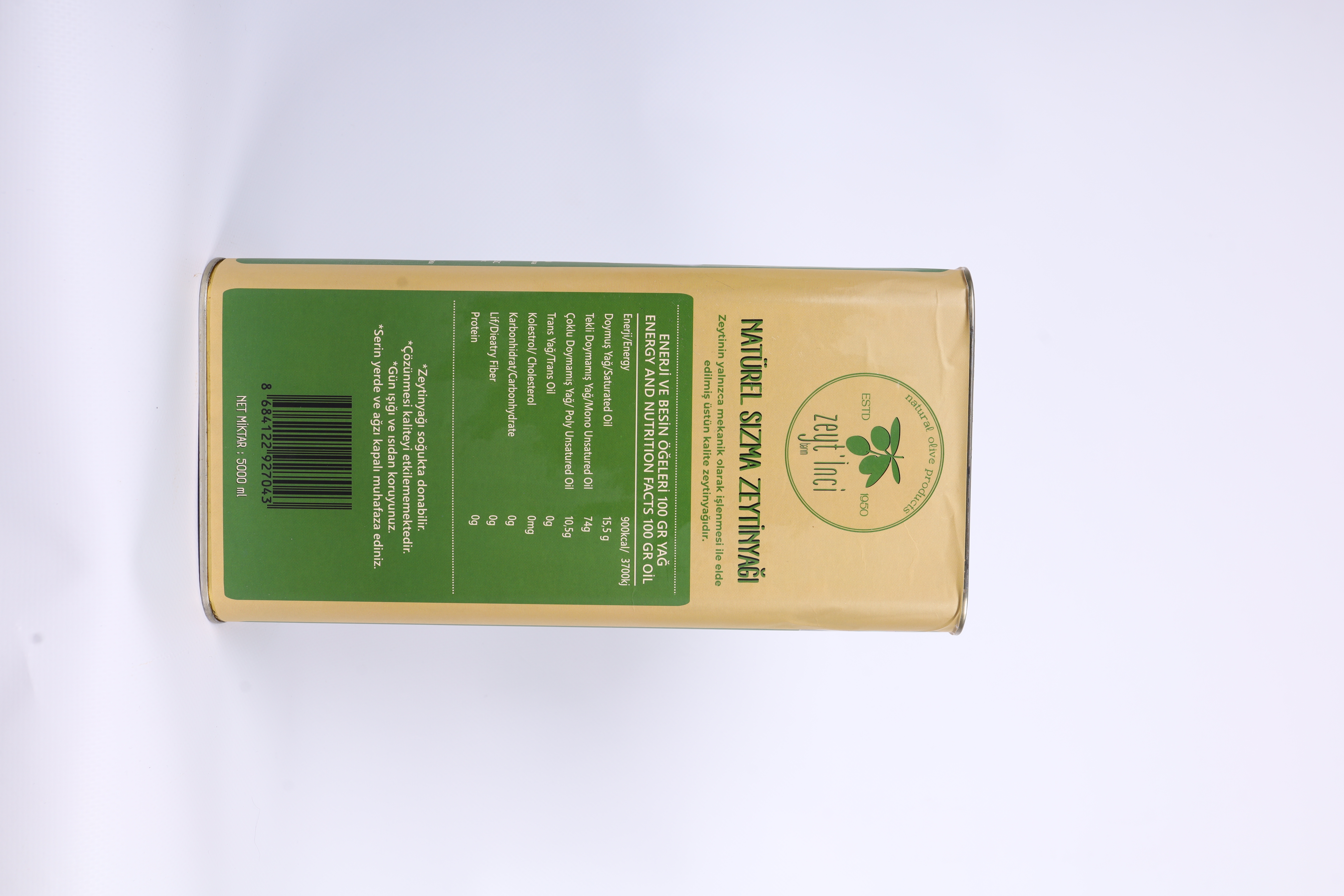 Erken Hasat & Soğuk Sıkım Yeni Hasat Natürel Sızma Zeytinyağ 5 lt Teneke